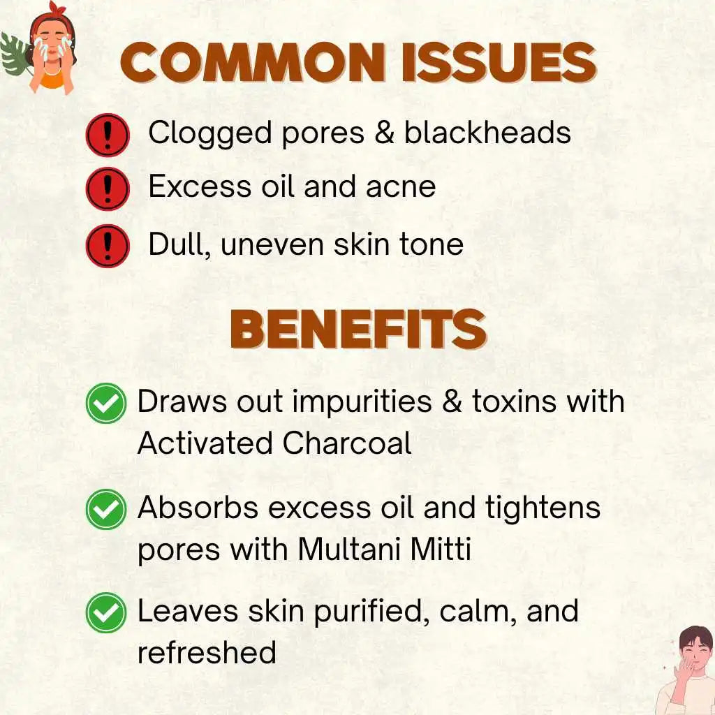 ✅ Absorbs excess oil and tightens pores with Multani Mitti.