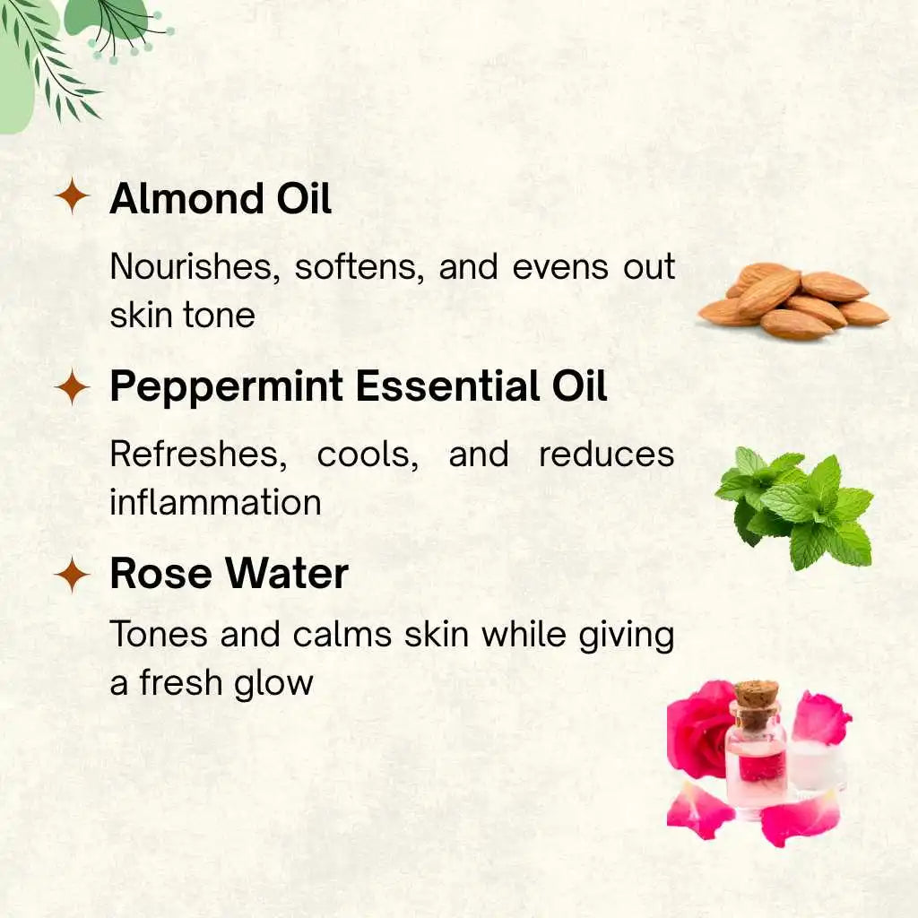 ✔ Rose Water – Tones and calms skin while giving a fresh glow.
