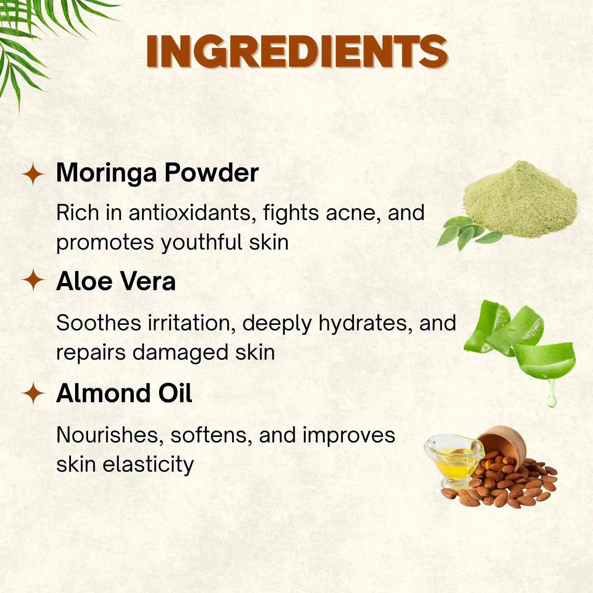 ✅ Brightens skin & reduces dark spots with Moringa Extract.