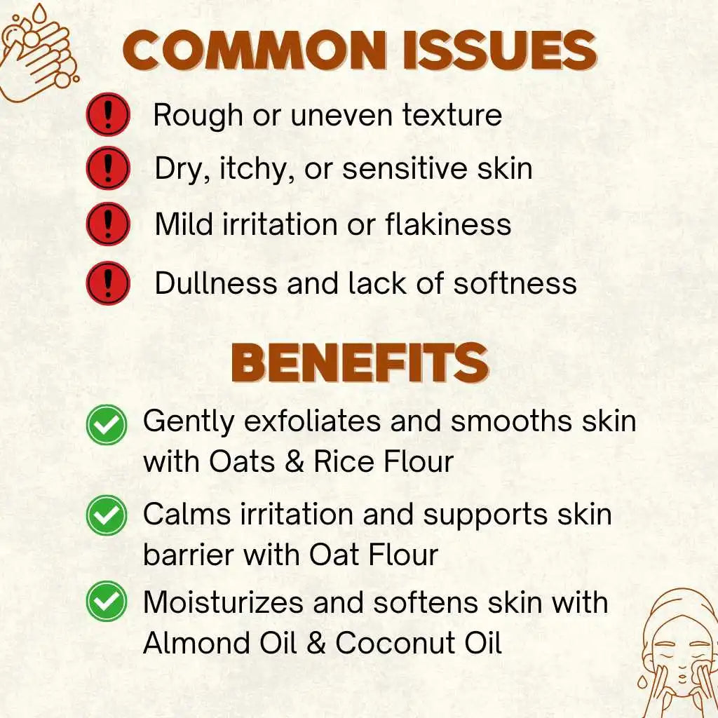 ✅ Gently exfoliates and smooths skin with Oats & Rice Flour